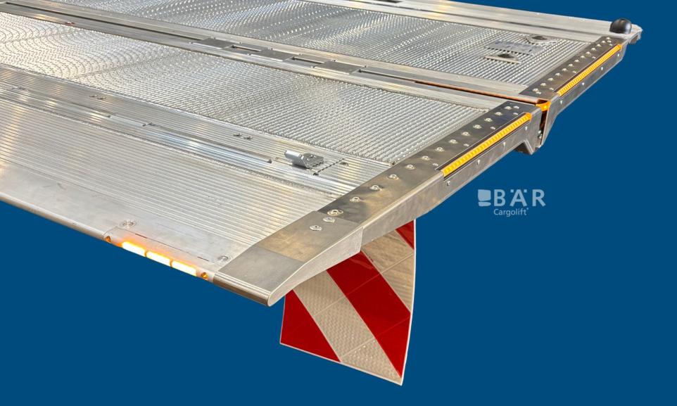 TipFlash está disponible para Bär Cargolift Standard S4 a partir de 1500 kg de capacidad de carga con las esquinas de plataforma reforzadas RamGuard o SteelTop. BÄR recomienda la combinación con NightGuide para una visibilidad aún mejor.